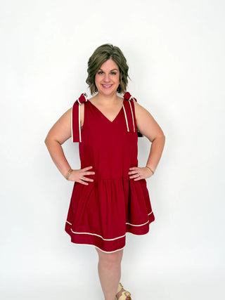 Get ready to turn heads with our Crimson Shoulder Tie Dress! With its striking crimson color and playful shoulder ties, this dress is perfect for any occasion. It's the easy-going, everyday dress you've been looking for.