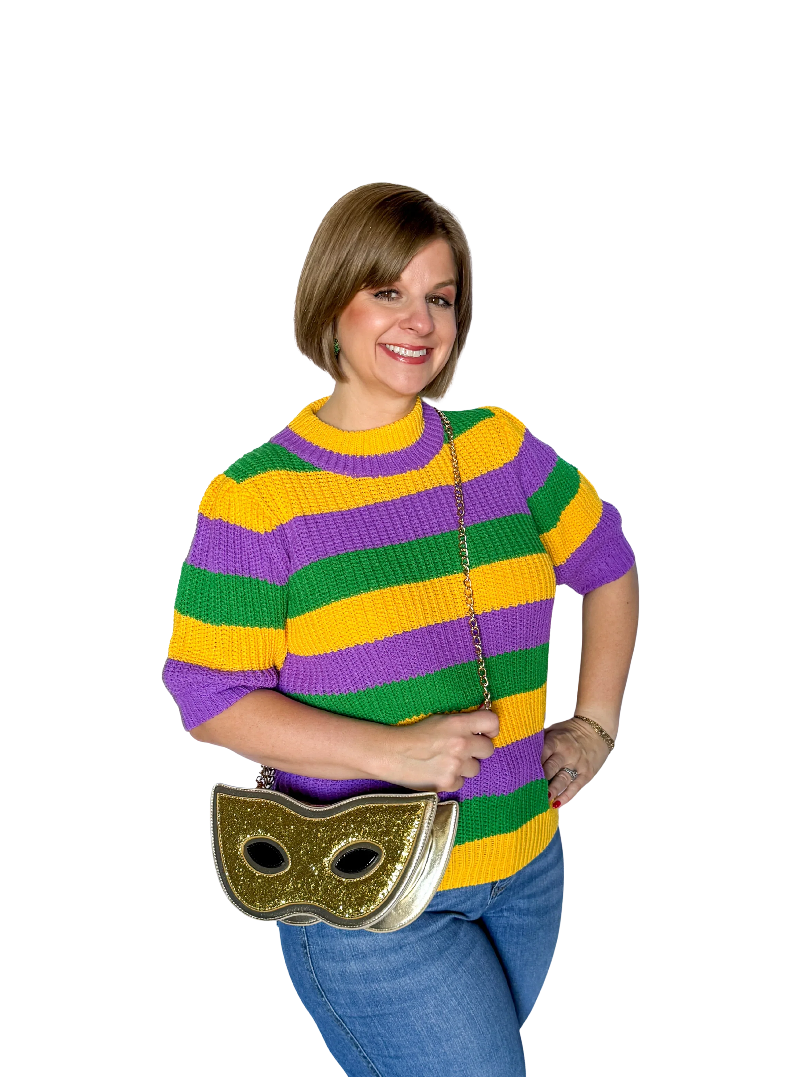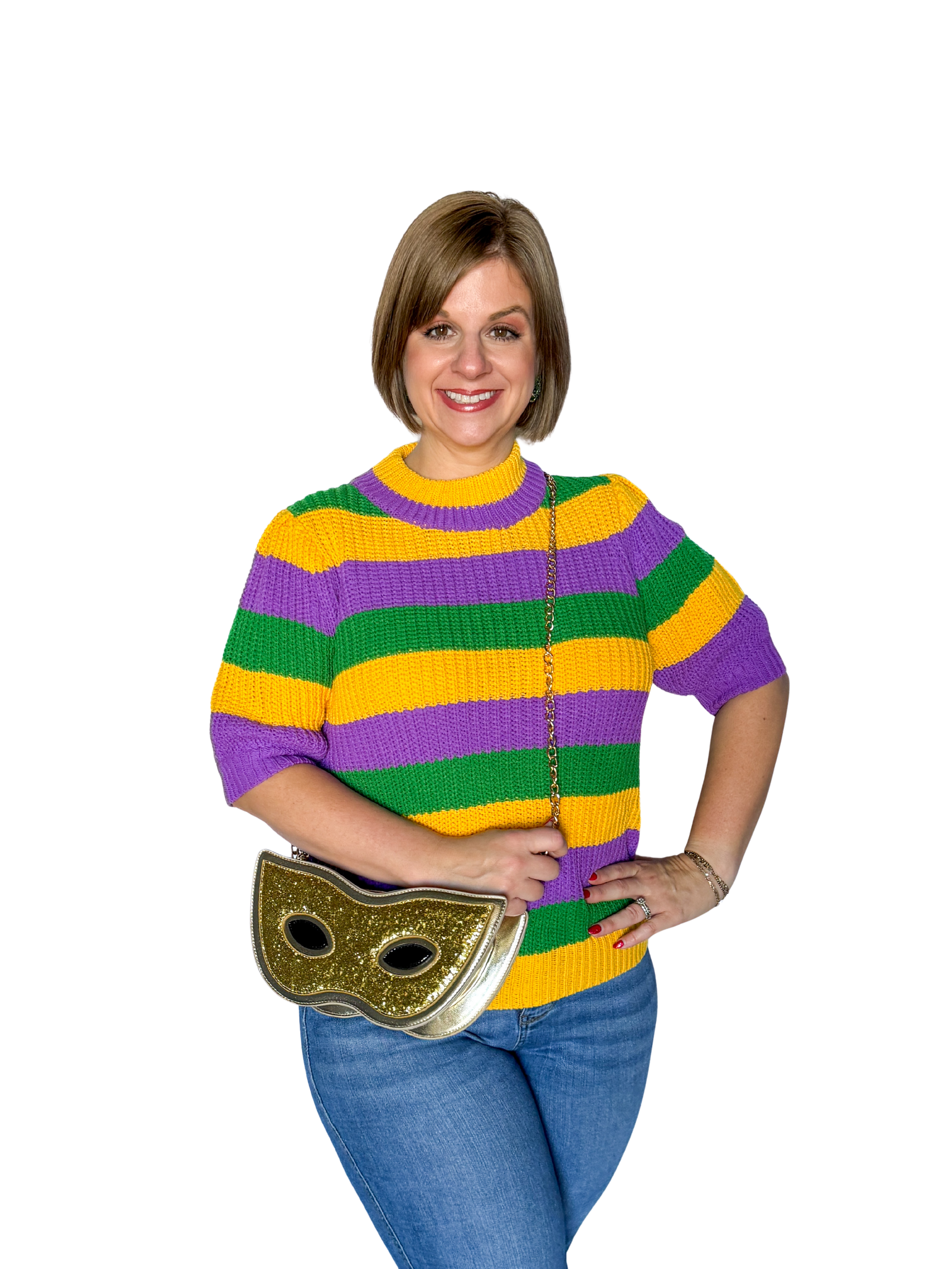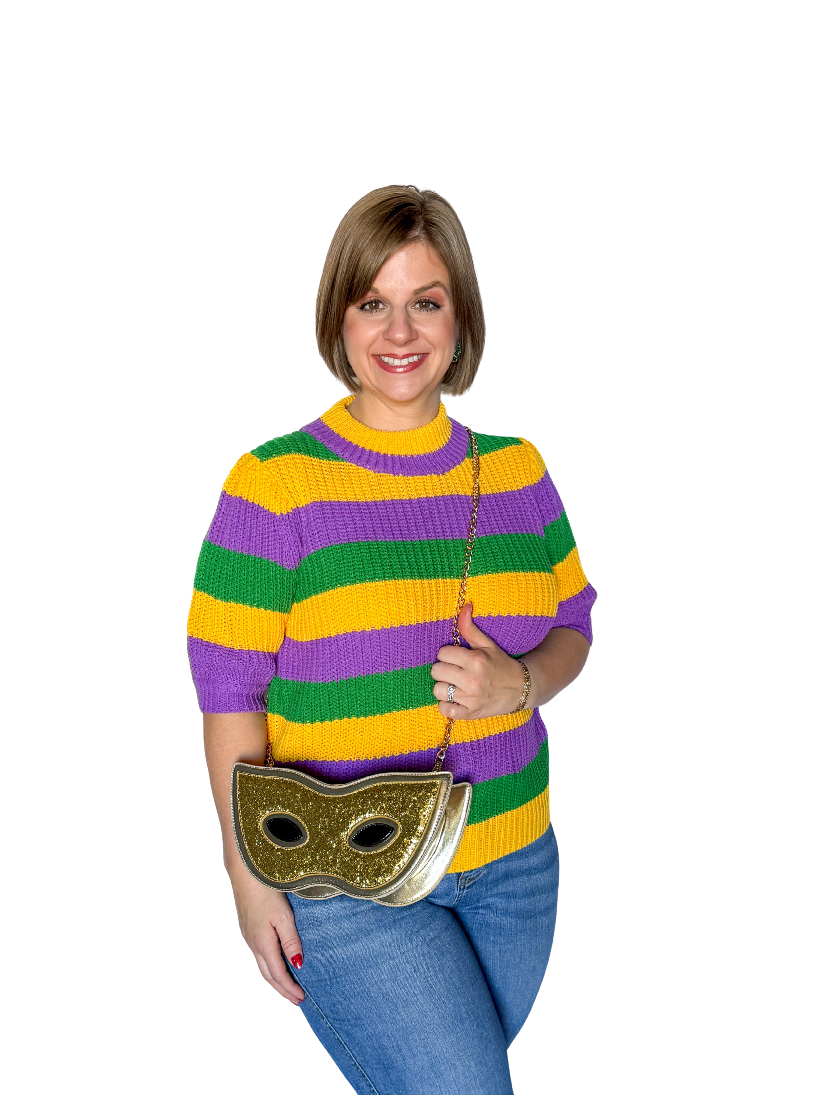 Our bestselling Mardi Gras mask purse is back for another year! This Mardi Gras season put a sparkly finish on your look with this truly unique accessory! Add some flair to your outfit with this one-of-a-kind purse, perfect for any festive shindig. Going out for a night on the town? This purse will make you stand out from the crowd!