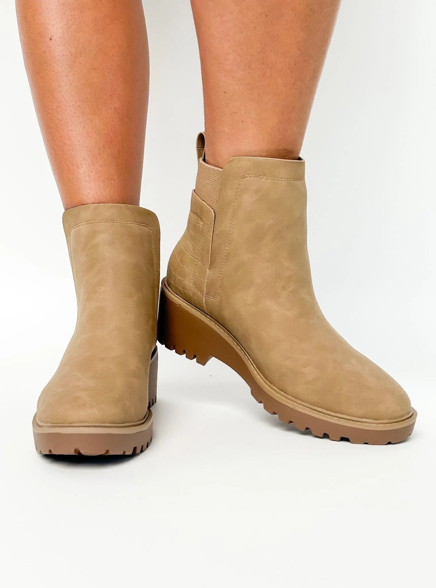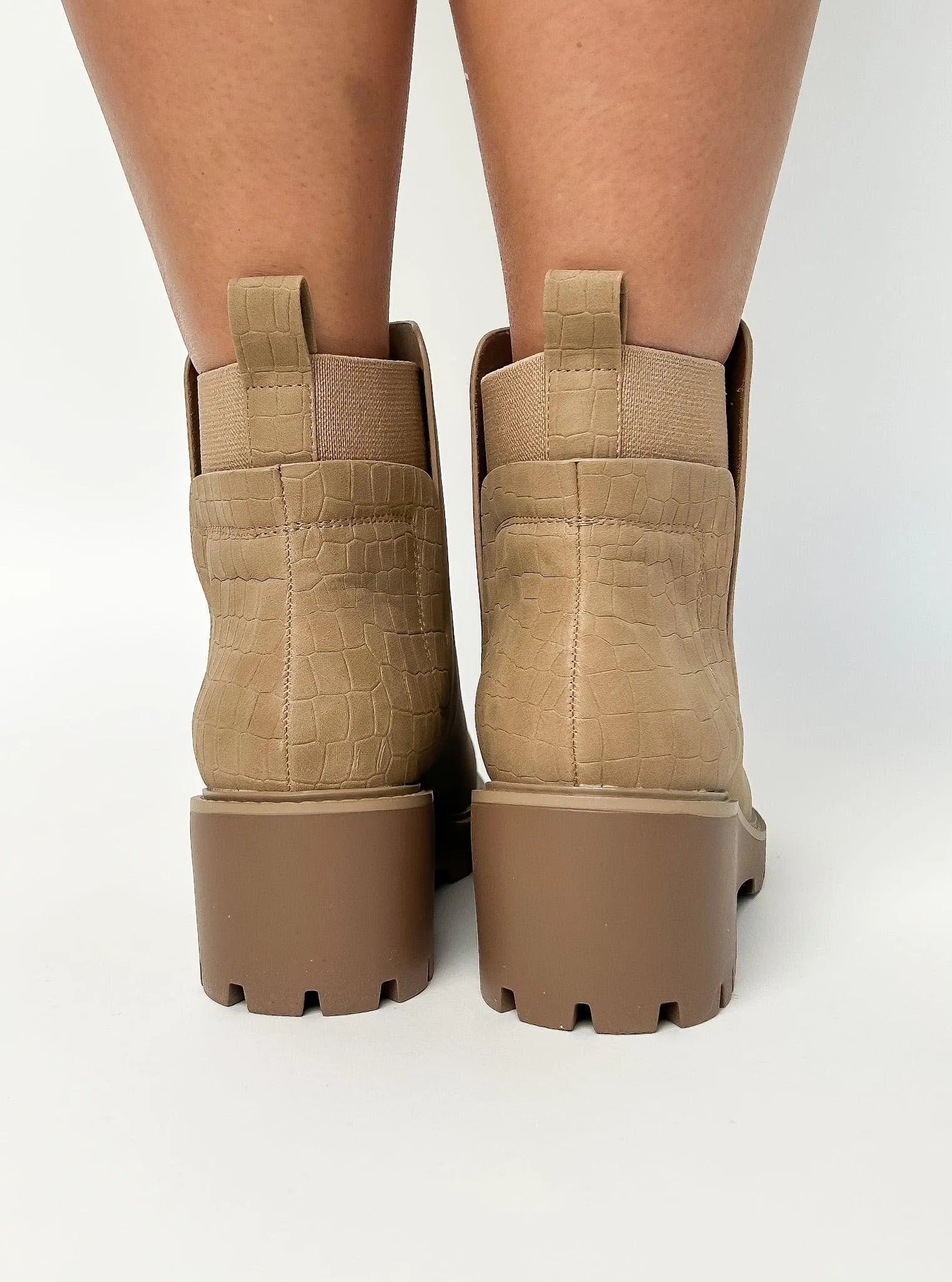 Step into a new adventure with these tan lug boots. Perfect for risk-takers, they are crafted from quality materials for an outdoor-inspired look with fashion forward style. Add these boots to your collection and embark on the path to chic boldness!