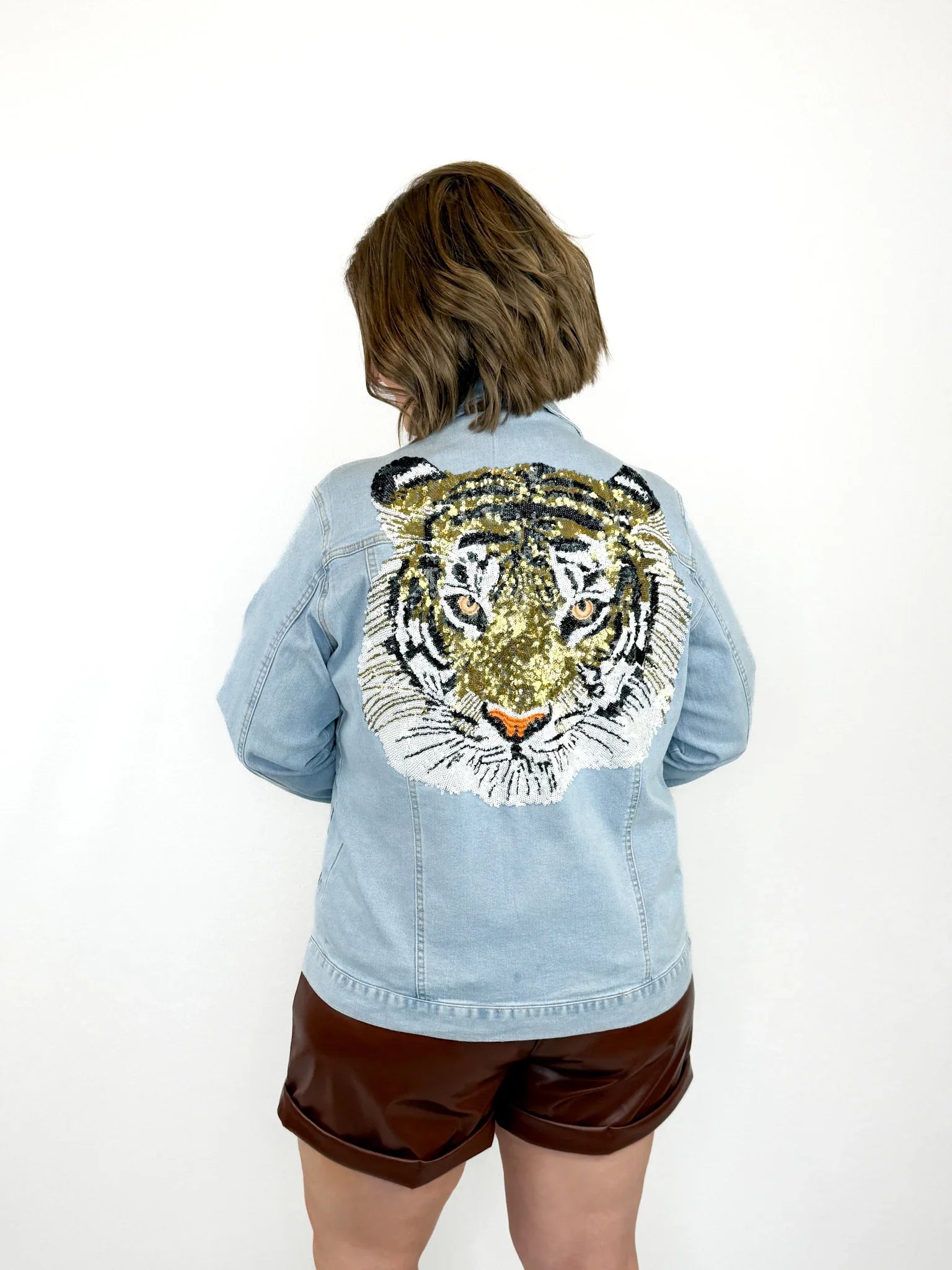 - Sequin & embroidered tiger face on back