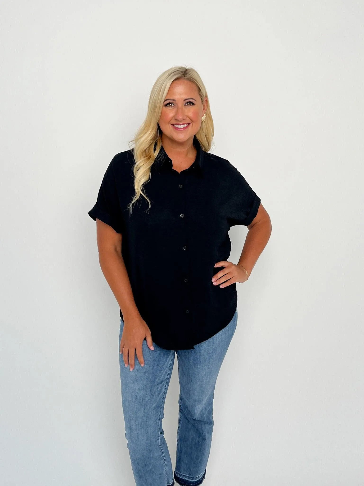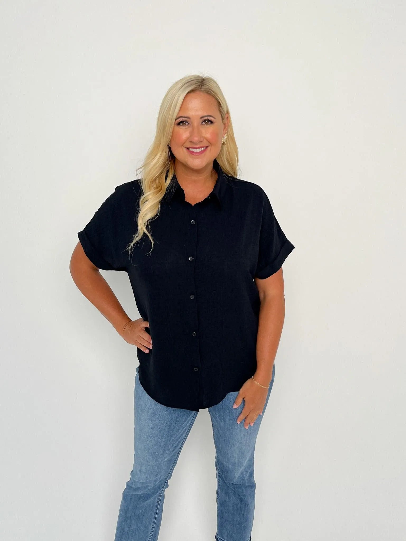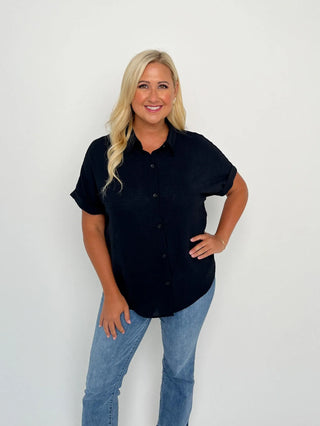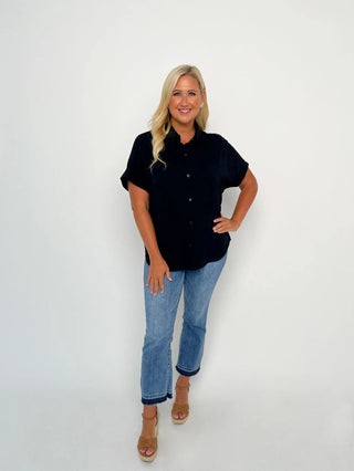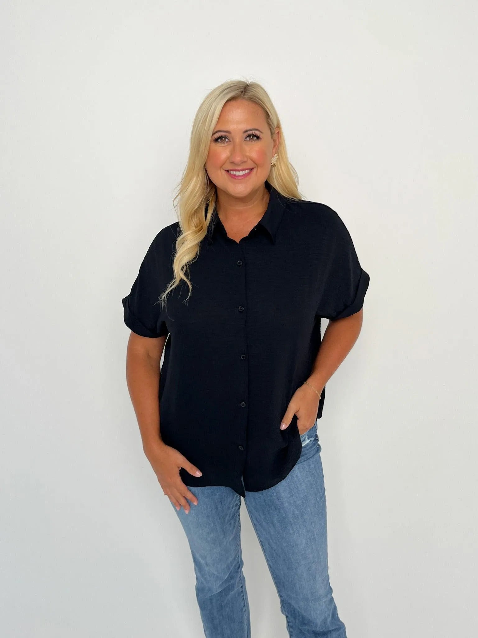 With a stylish rolled cuff and a flattering dolman cut, our Black Rolled Cuff Dolman Top is the perfect addition to your wardrobe. This top has a collared button design that offers both comfort and sophistication. Enhance your style with this classic, must-have piece!