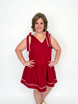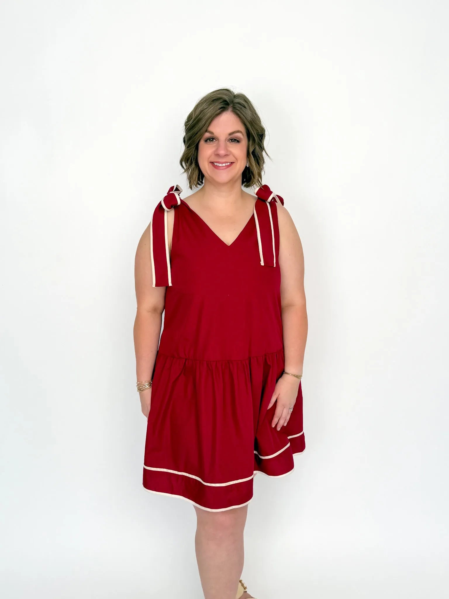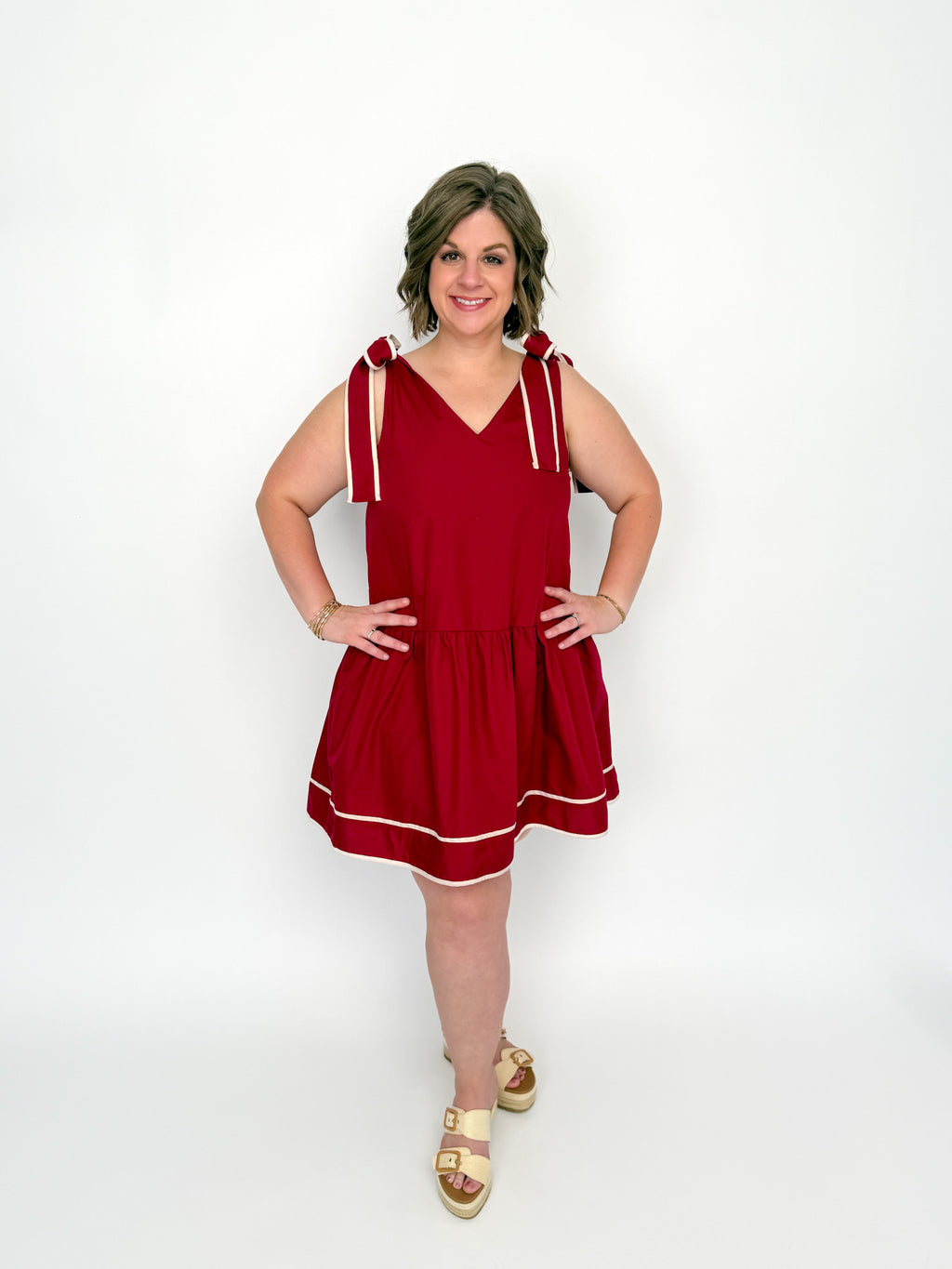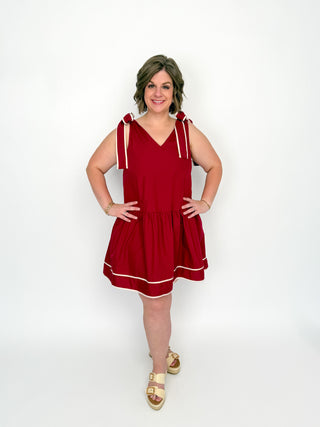 Get ready to turn heads with our Crimson Shoulder Tie Dress! With its striking crimson color and playful shoulder ties, this dress is perfect for any occasion. It's the easy-going, everyday dress you've been looking for.