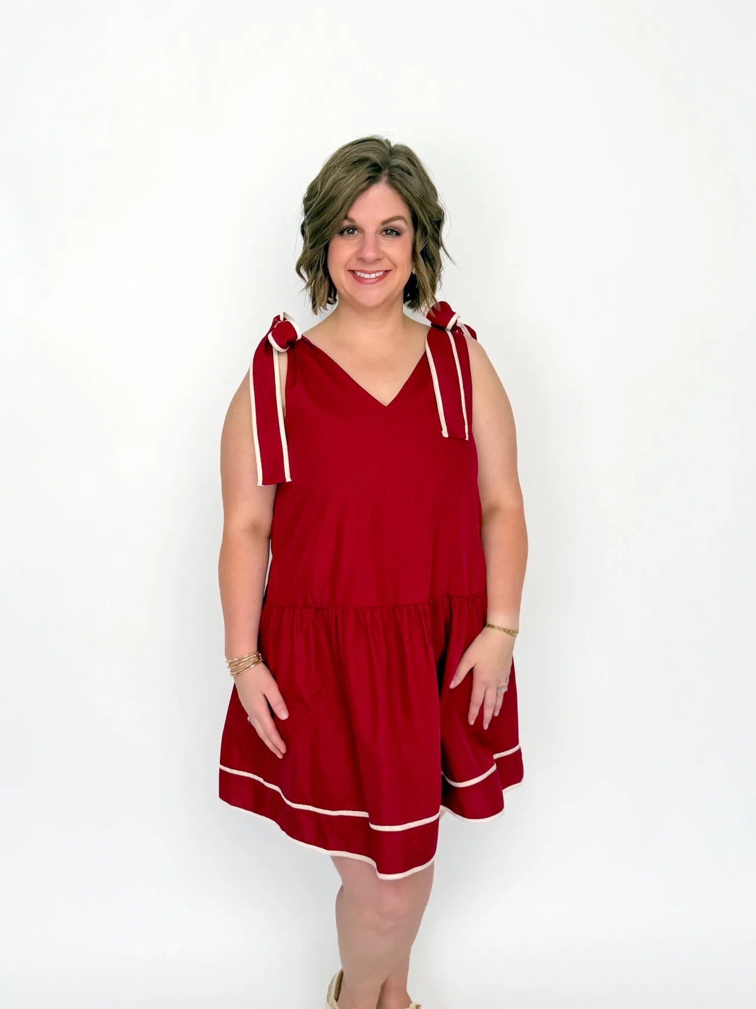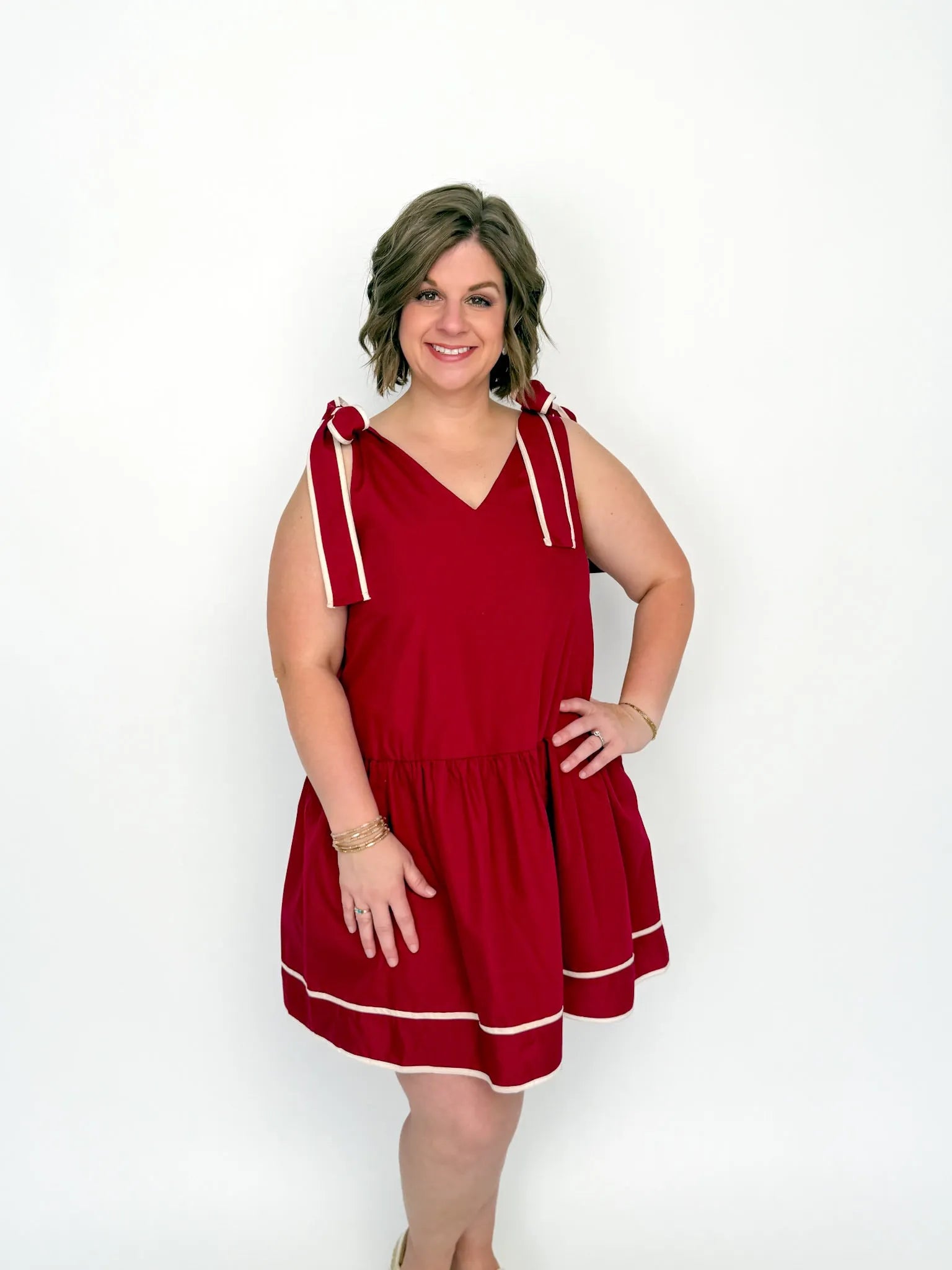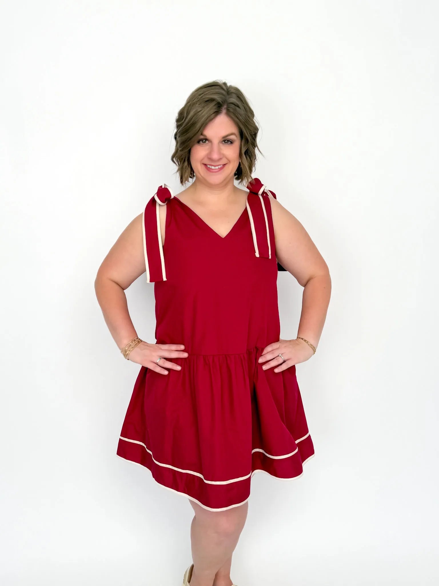 Get ready to turn heads with our Crimson Shoulder Tie Dress! With its striking crimson color and playful shoulder ties, this dress is perfect for any occasion. It's the easy-going, everyday dress you've been looking for.